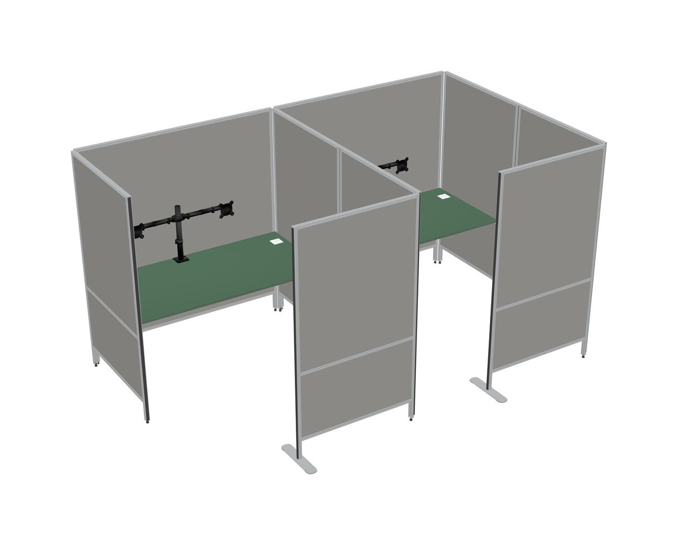 Green Flexible Panel System With Privacy For 2 + Monitor Arm (double Arms)