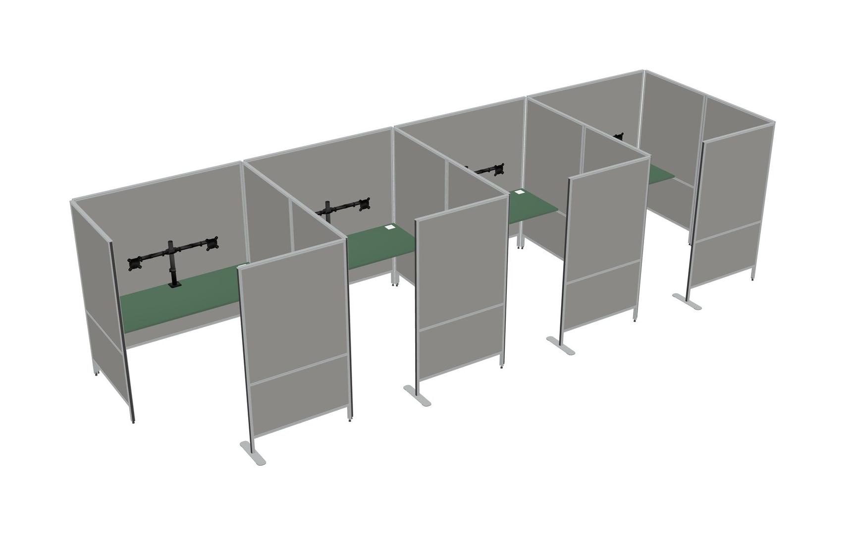 Green Flexible Panel System With Privacy For 4 + Monitor Arm (double Arms)