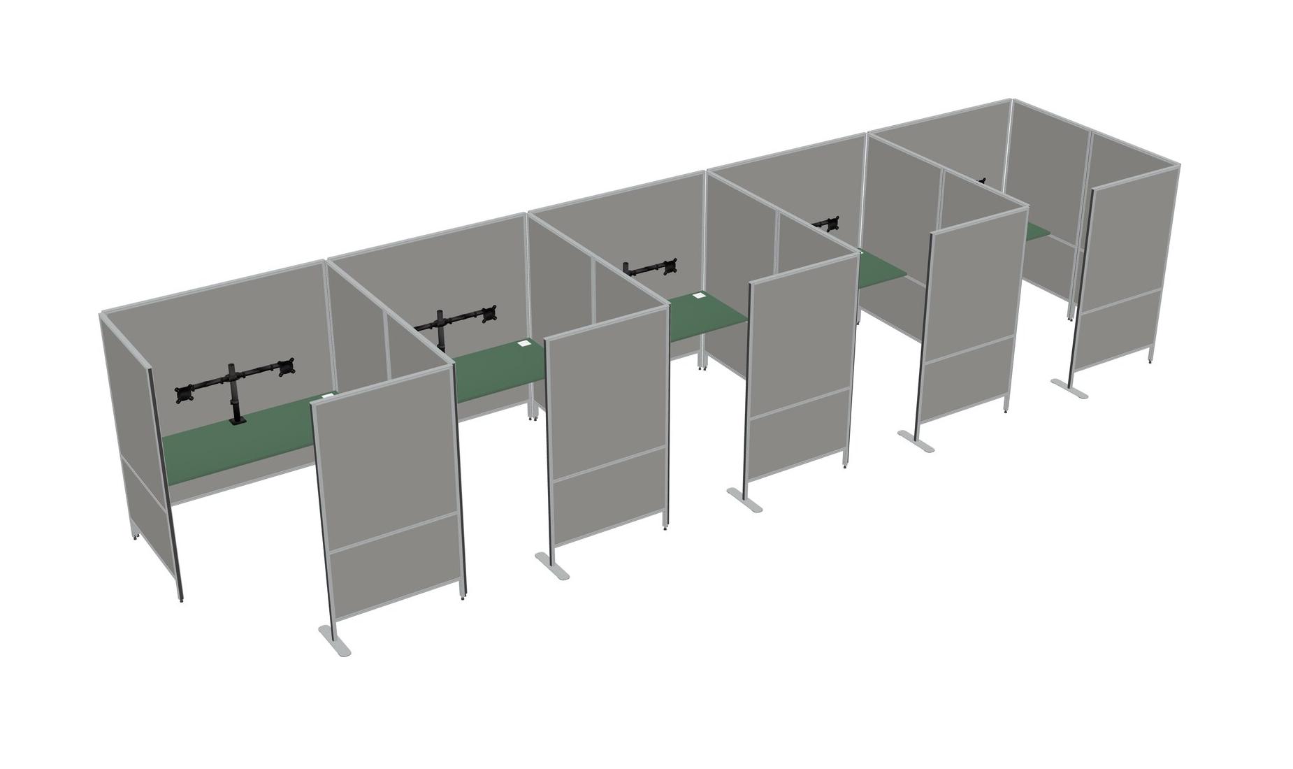 Green Flexible Panel System With Privacy For 5 + Monitor Arm (double Arms)