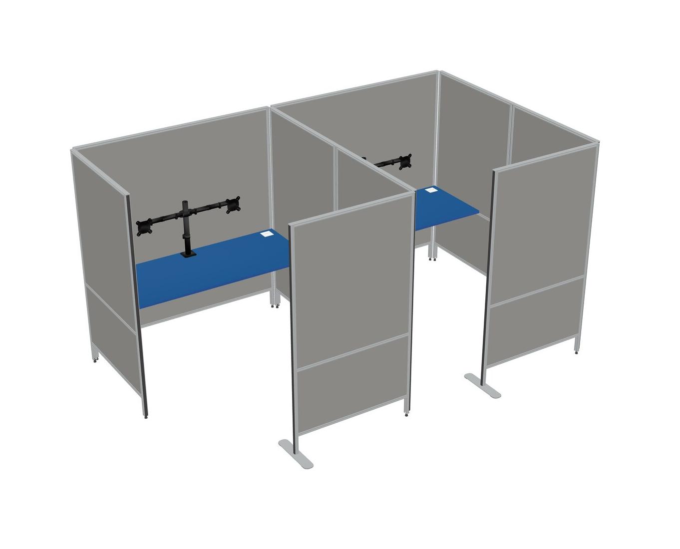 Prism Blue Flexible Panel System With Privacy For 2 + Monitor Arm (double Arms)
