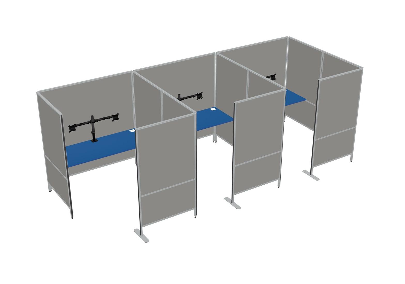 Prism Blue Flexible Panel System With Privacy For 3 + Monitor Arm (double Arms)