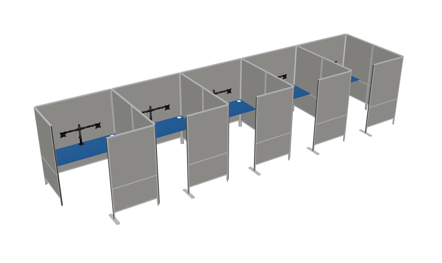 Prism Blue Flexible Panel System With Privacy For 5 + Monitor Arm (double Arms)