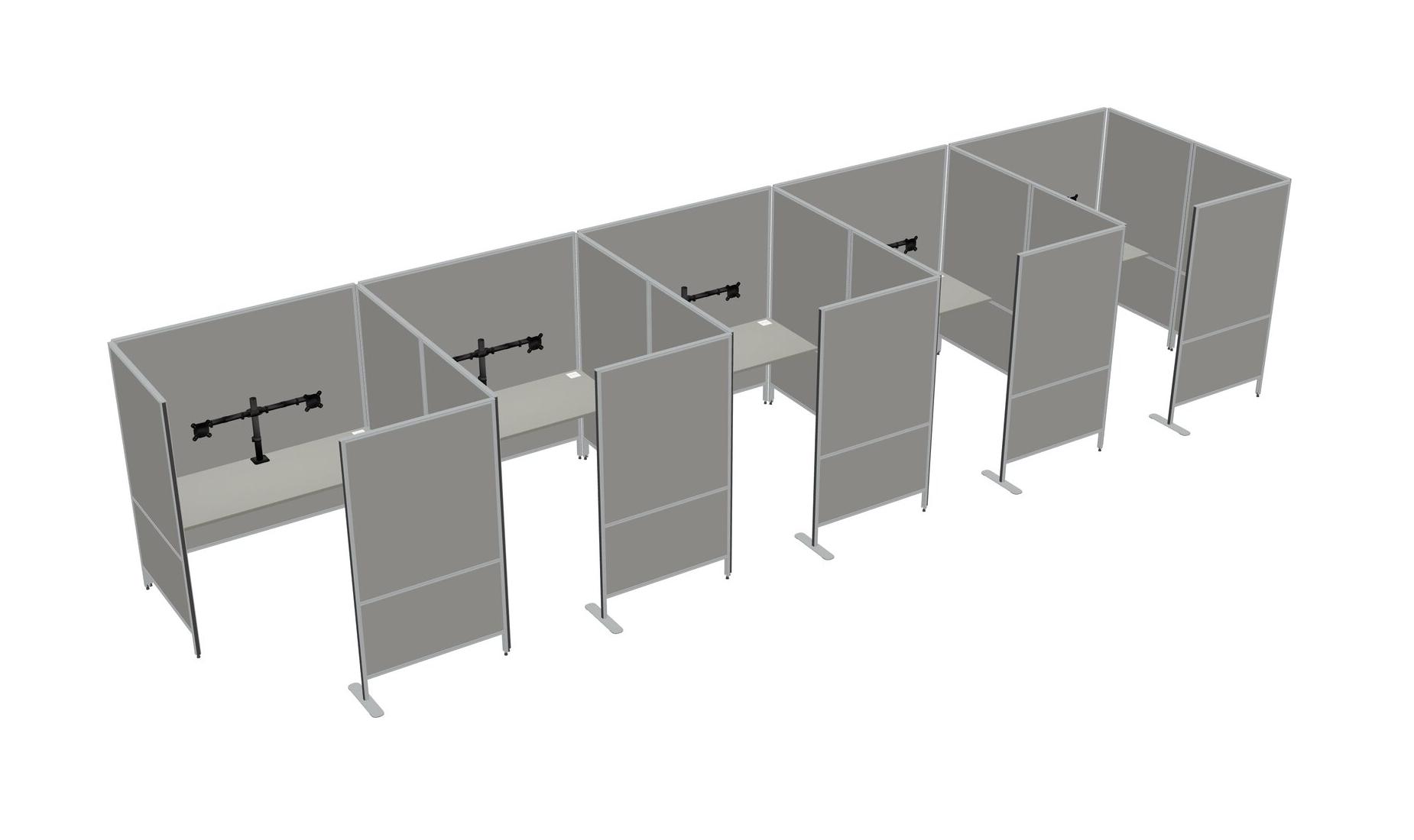 Grey Shadows Flexible Panel System With Privacy For 5 + Monitor Arm (double Arms)