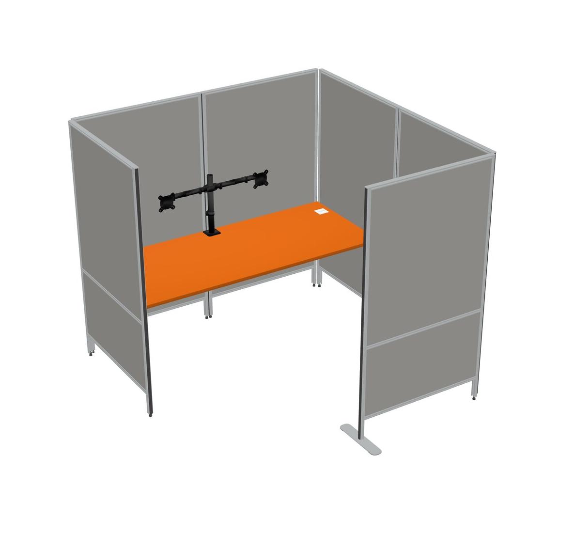 Orange Flexible Panel System With Privacy For 1 + Monitor Arm (double Arms)