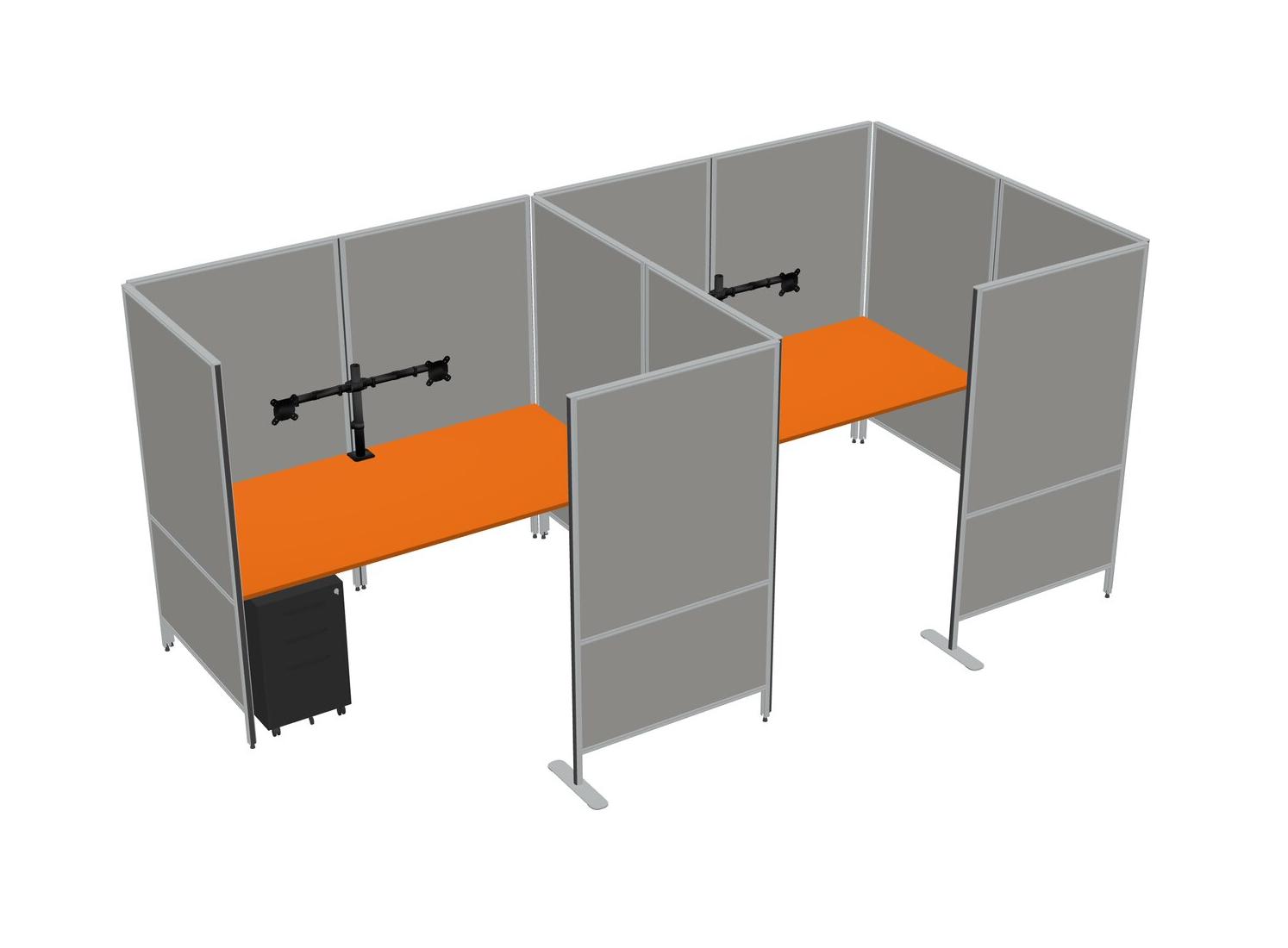 Orange Flexible Panel System With Privacy For 2 + Metal Mobile Drawers + Monitor Arm (double Arms)