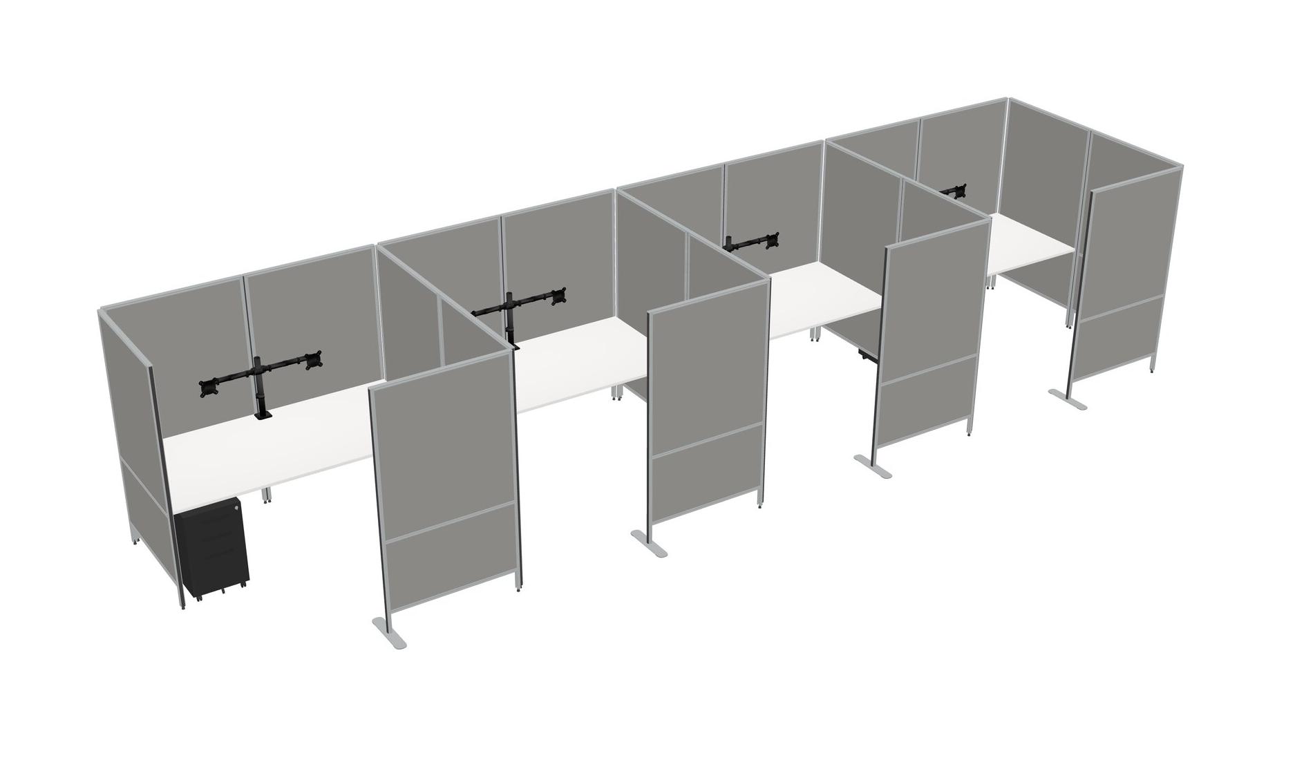 White Flexible Panel System With Privacy For 4 + Metal Mobile Drawers + Monitor Arm (double Arms)