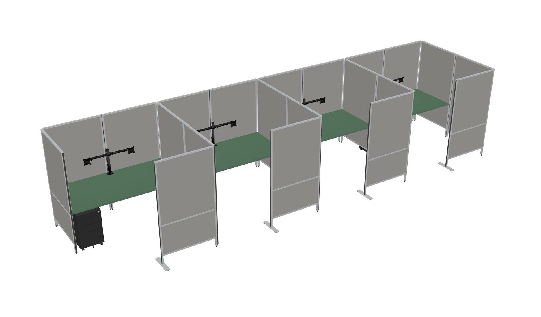 Green Flexible Panel System With Privacy For 4 + Metal Mobile Drawers + Monitor Arm (double Arms)