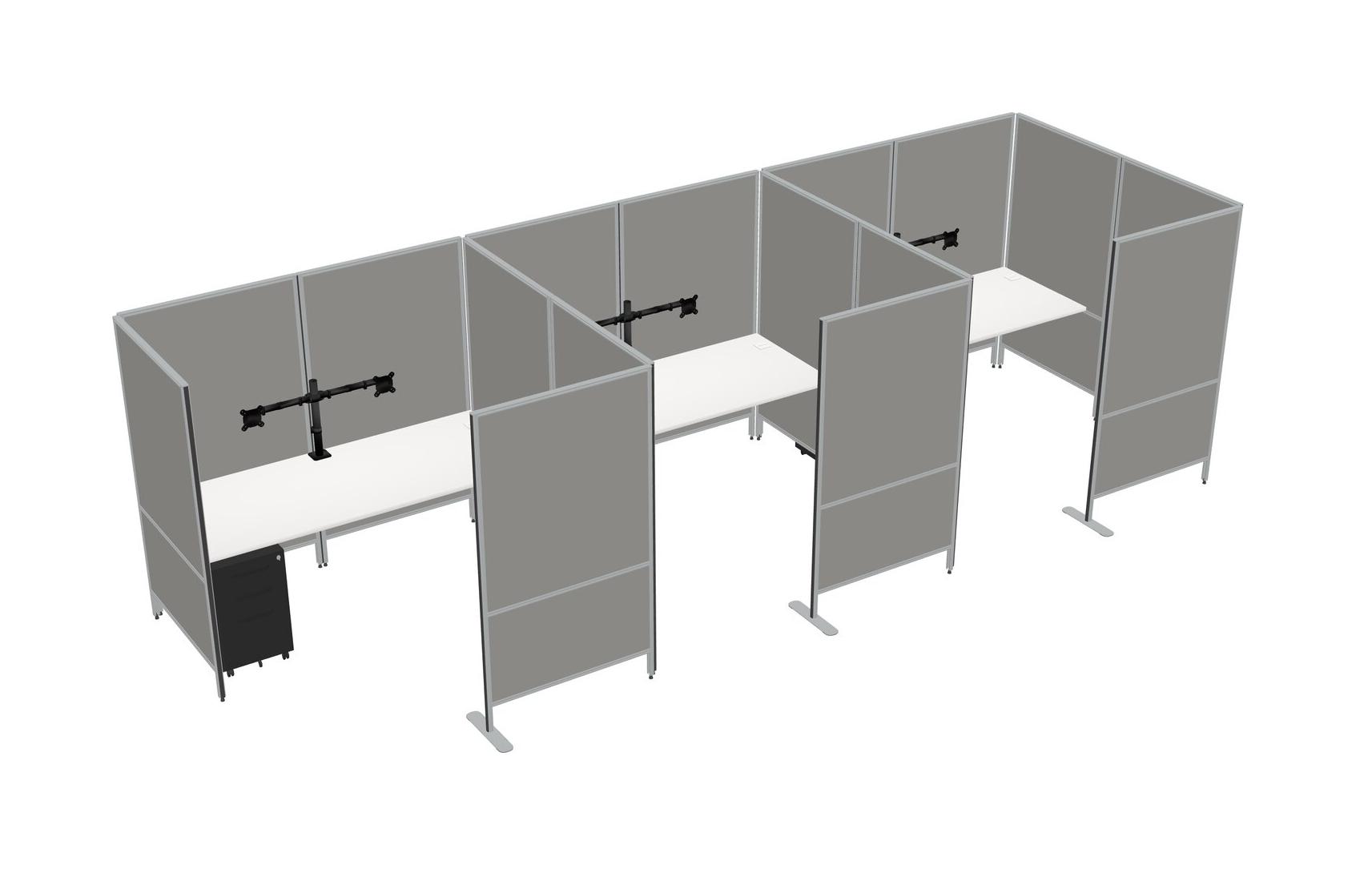 White Flexible Panel System With Privacy For 3 + Metal Mobile Drawers + Monitor Arm (double Arms)