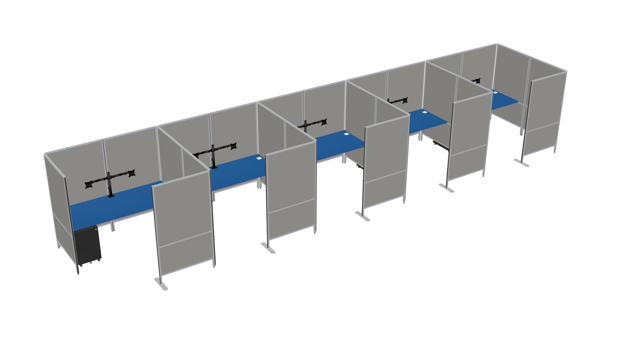 Prism Blue Flexible Panel System With Privacy For 5 + Metal Mobile Drawers + Monitor Arm (double Arms)