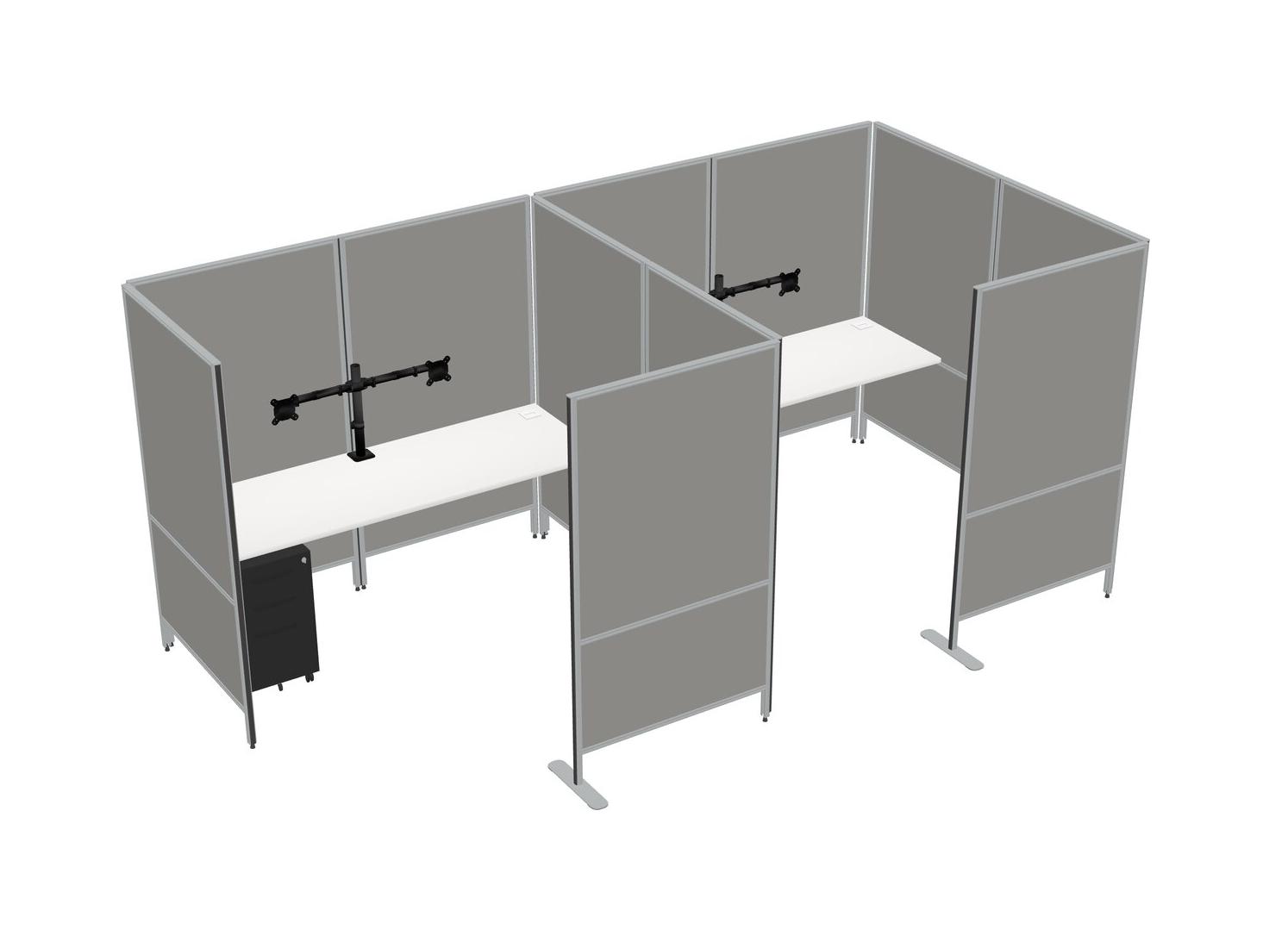 White Flexible Panel System With Privacy For 2 + Metal Mobile Drawers + Monitor Arm (double Arms)