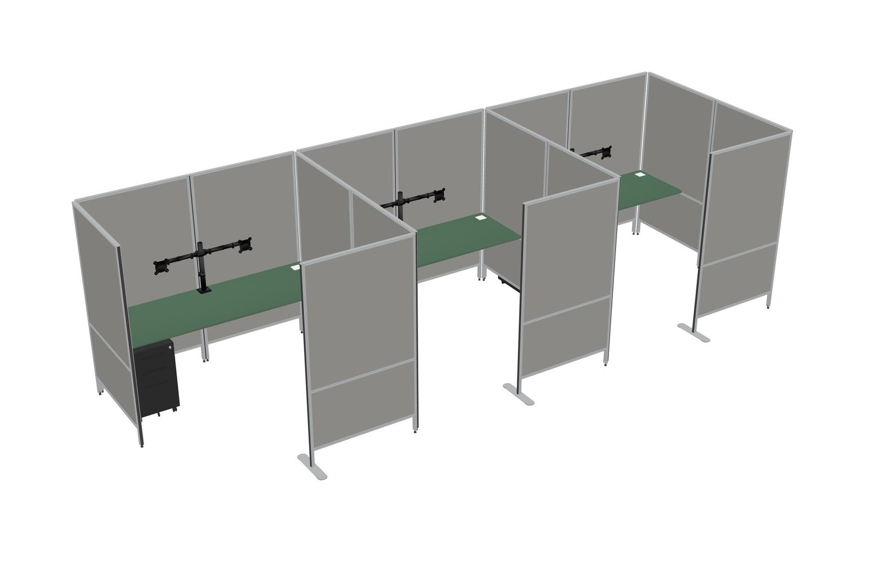 Green Flexible Panel System With Privacy For 3 + Metal Mobile Drawers + Monitor Arm (double Arms)
