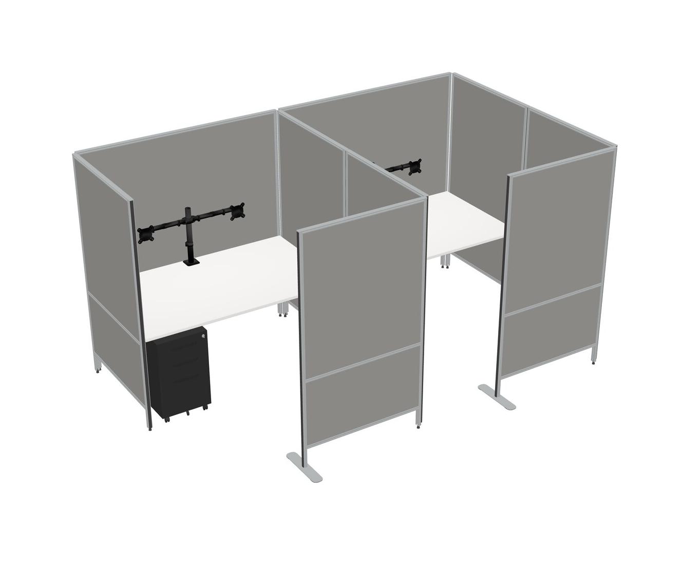White Flexible Panel System With Privacy For 2 + Metal Mobile Drawers + Monitor Arm (double Arms)