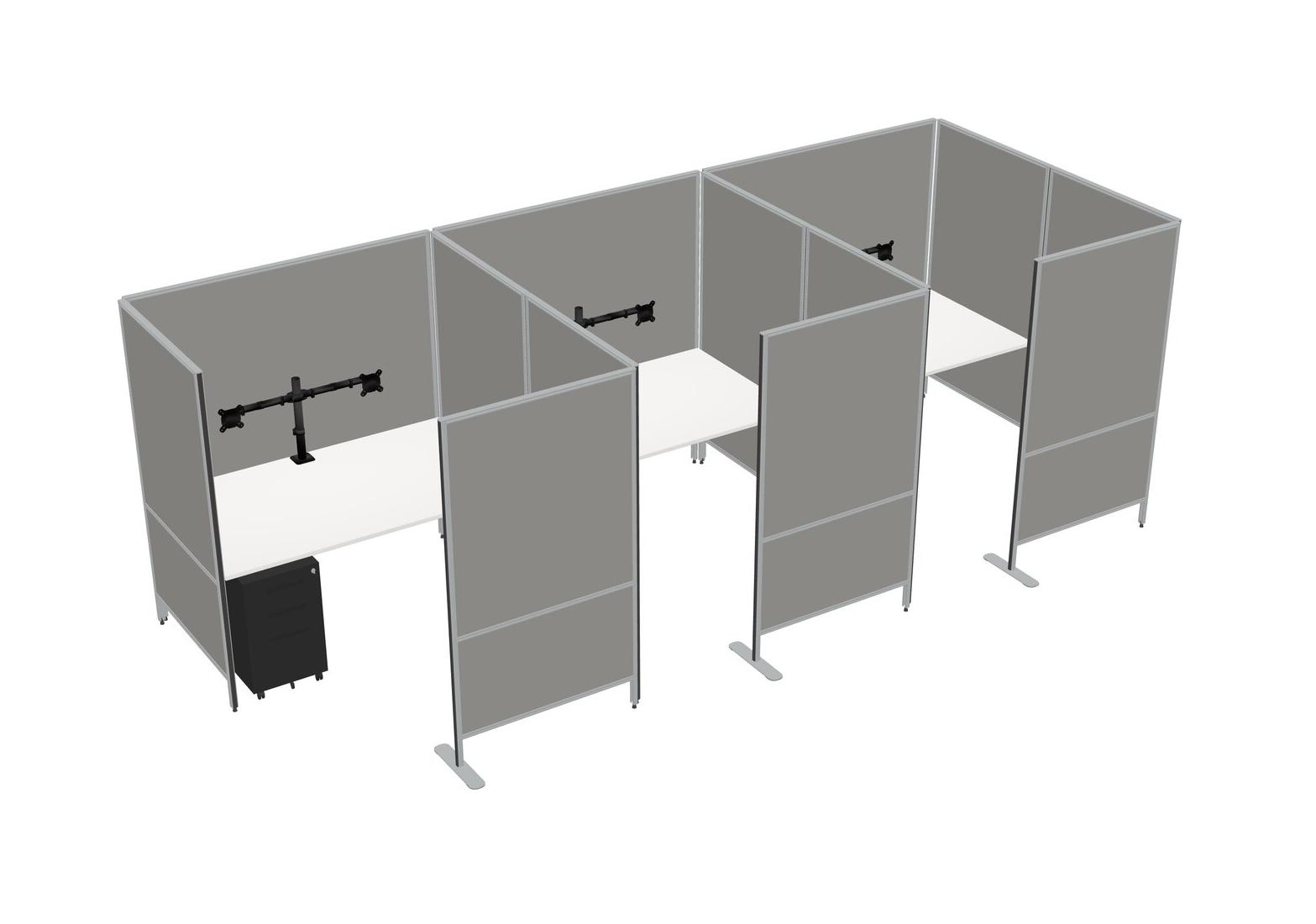 White Flexible Panel System With Privacy For 3 + Metal Mobile Drawers + Monitor Arm (double Arms)