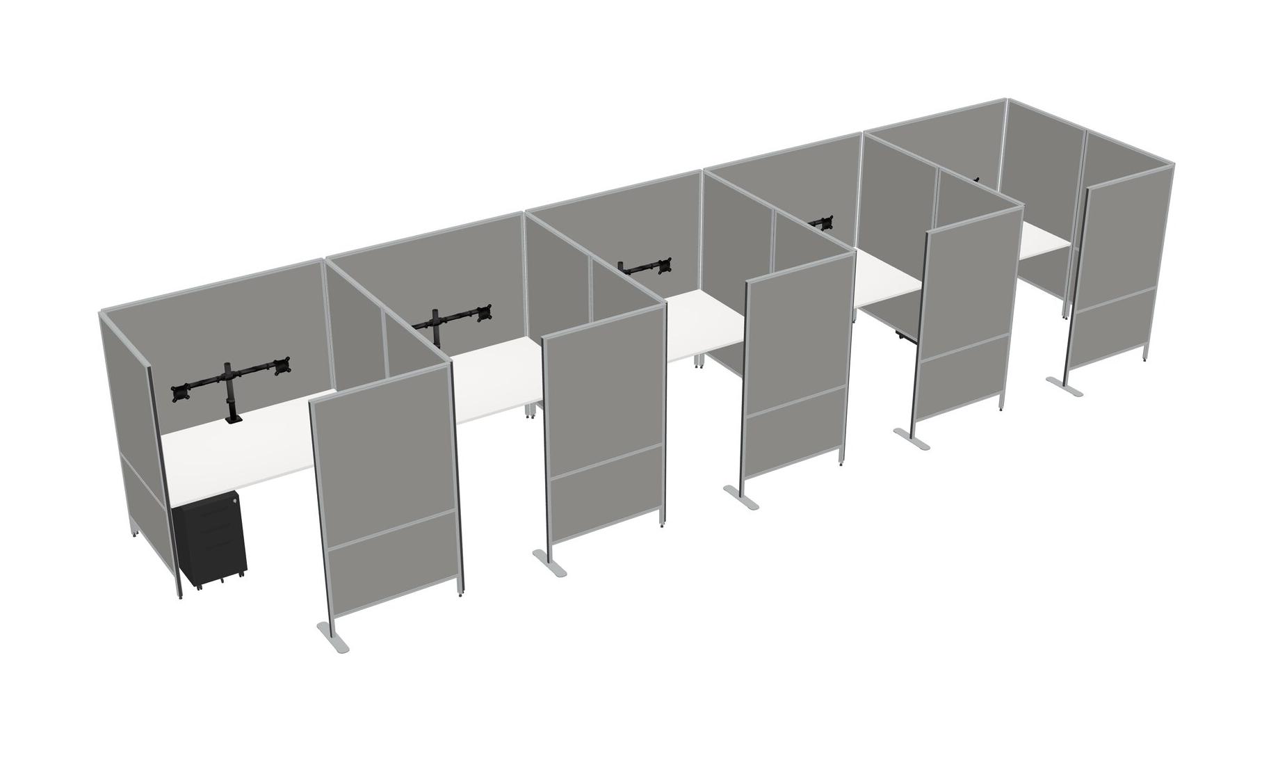 White Flexible Panel System With Privacy For 5 + Metal Mobile Drawers + Monitor Arm (double Arms)