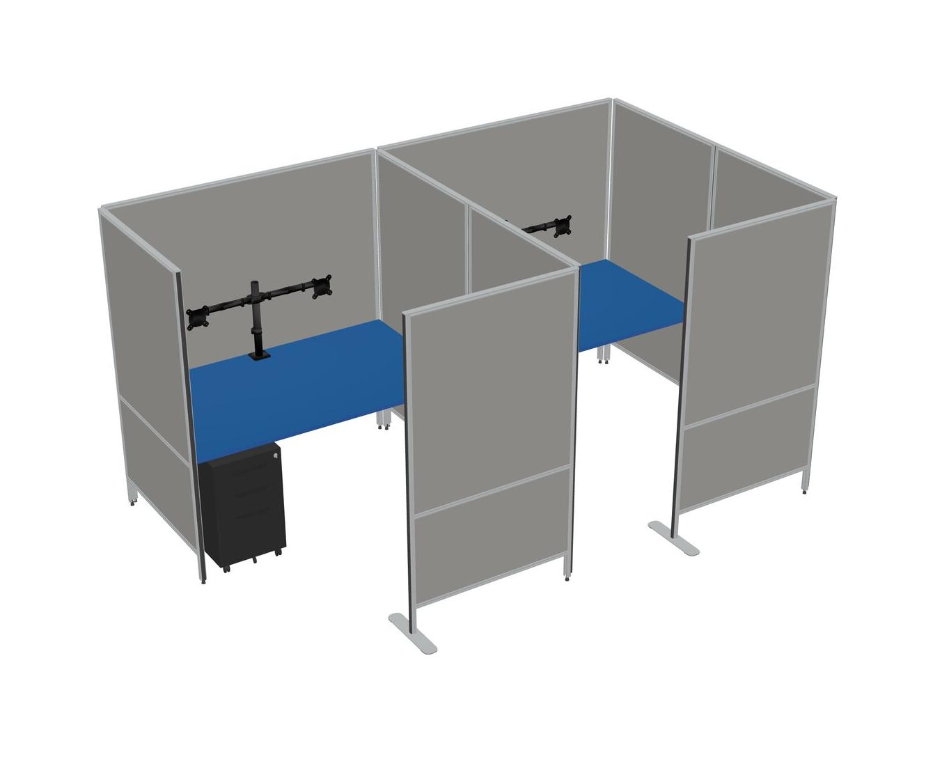 Prism Blue Flexible Panel System With Privacy For 2 + Metal Mobile Drawers + Monitor Arm (double Arms)
