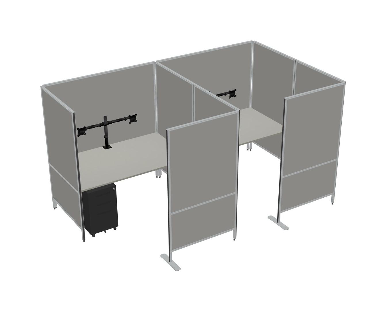 Grey Shadows Flexible Panel System With Privacy For 2 + Metal Mobile Drawers + Monitor Arm (double Arms)
