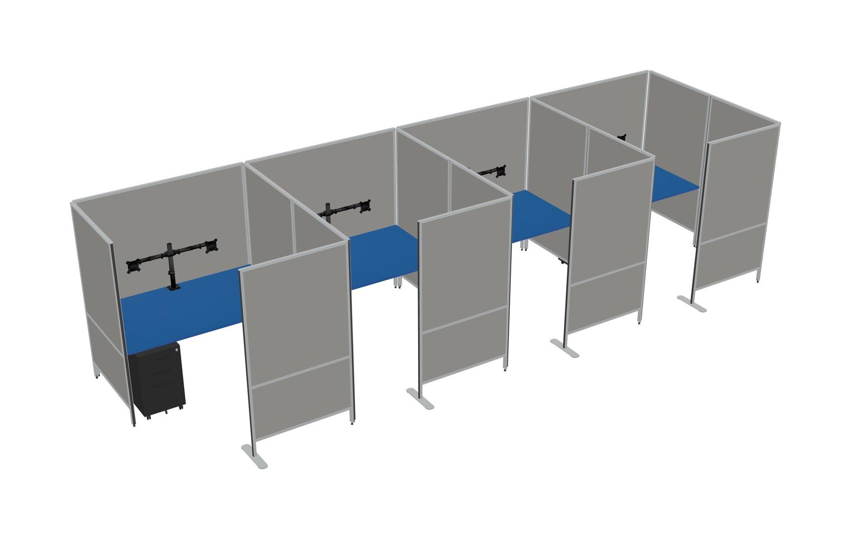Prism Blue Flexible Panel System With Privacy For 4 + Metal Mobile Drawers + Monitor Arm (double Arms)