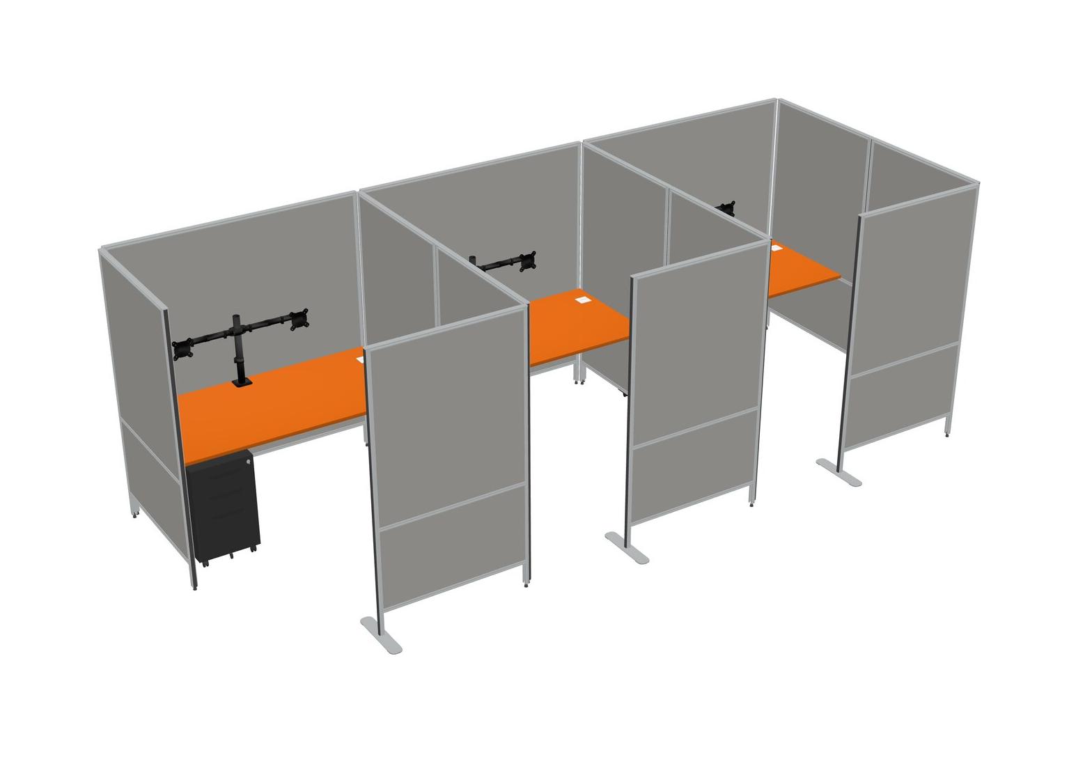 Orange Flexible Panel System With Privacy For 3 + Metal Mobile Drawers + Monitor Arm (double Arms)