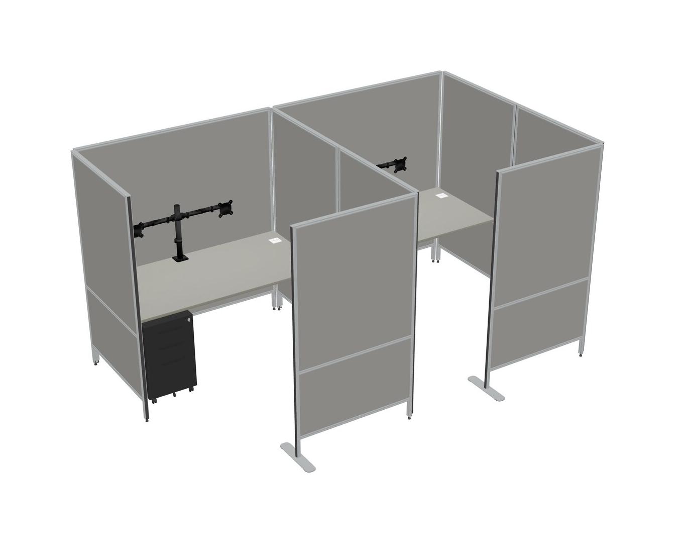 Grey Shadows Flexible Panel System With Privacy For 2 + Metal Mobile Drawers + Monitor Arm (double Arms)
