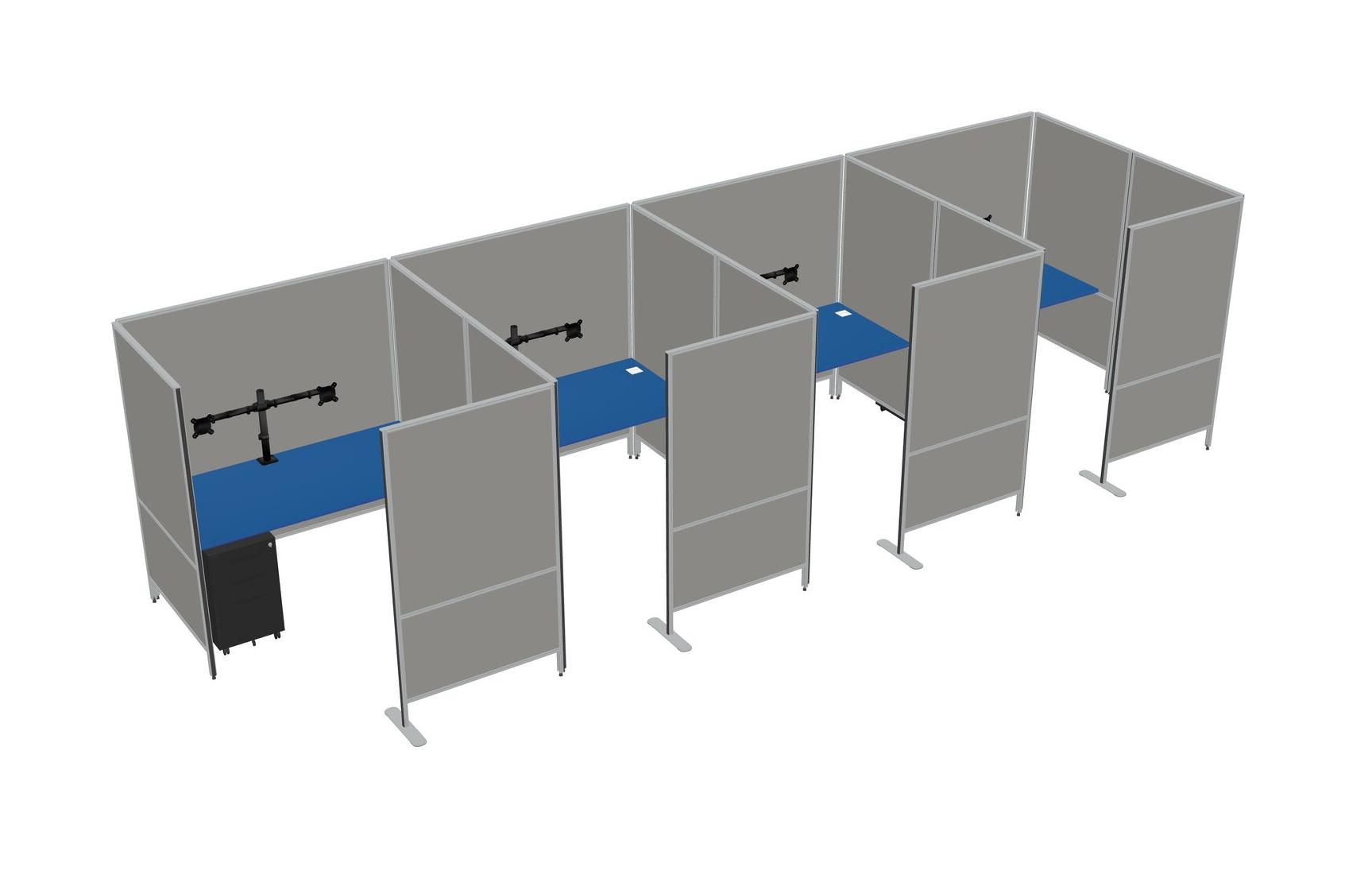 Prism Blue Flexible Panel System With Privacy For 4 + Metal Mobile Drawers + Monitor Arm (double Arms)