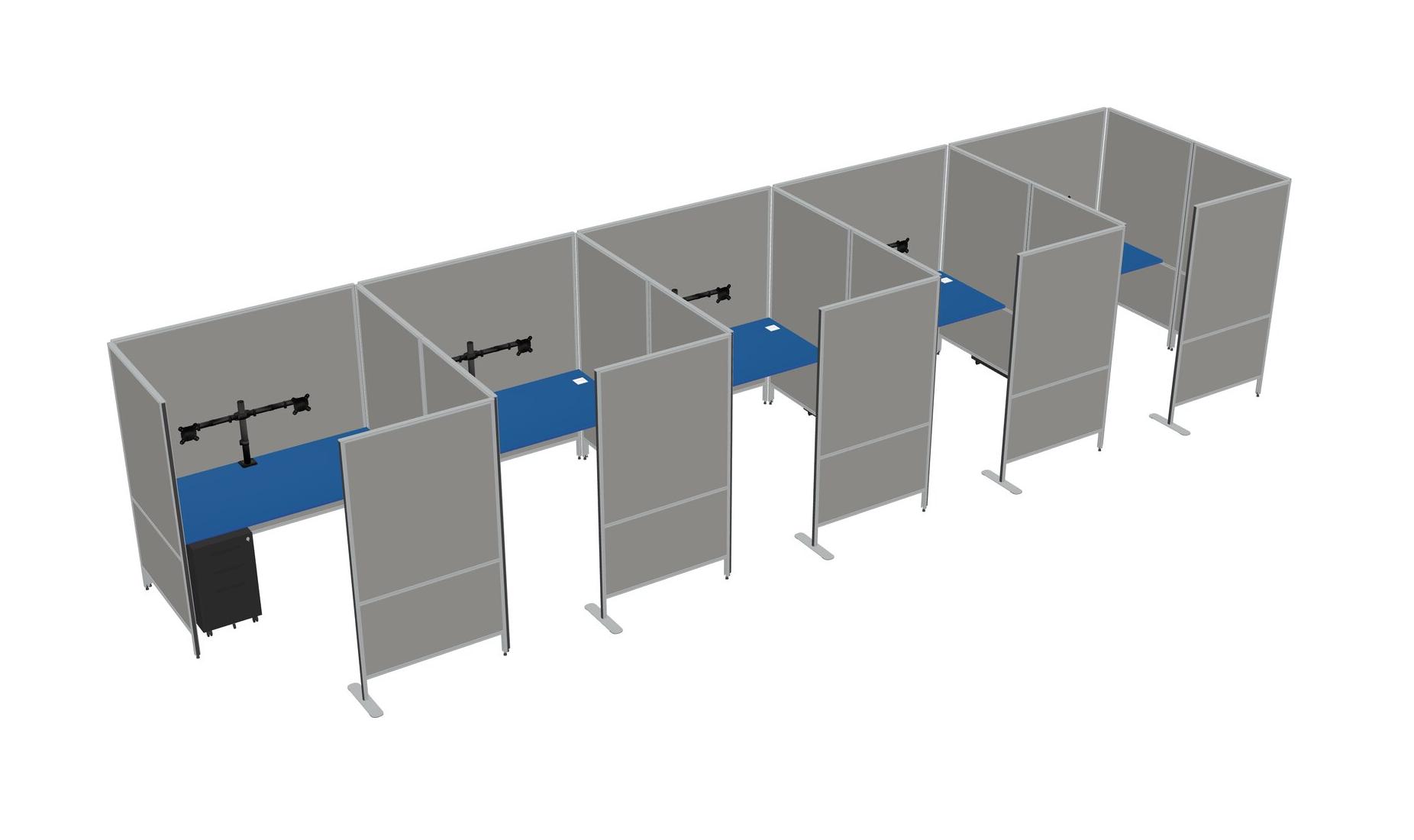 Prism Blue Flexible Panel System With Privacy For 5 + Metal Mobile Drawers + Monitor Arm (double Arms)