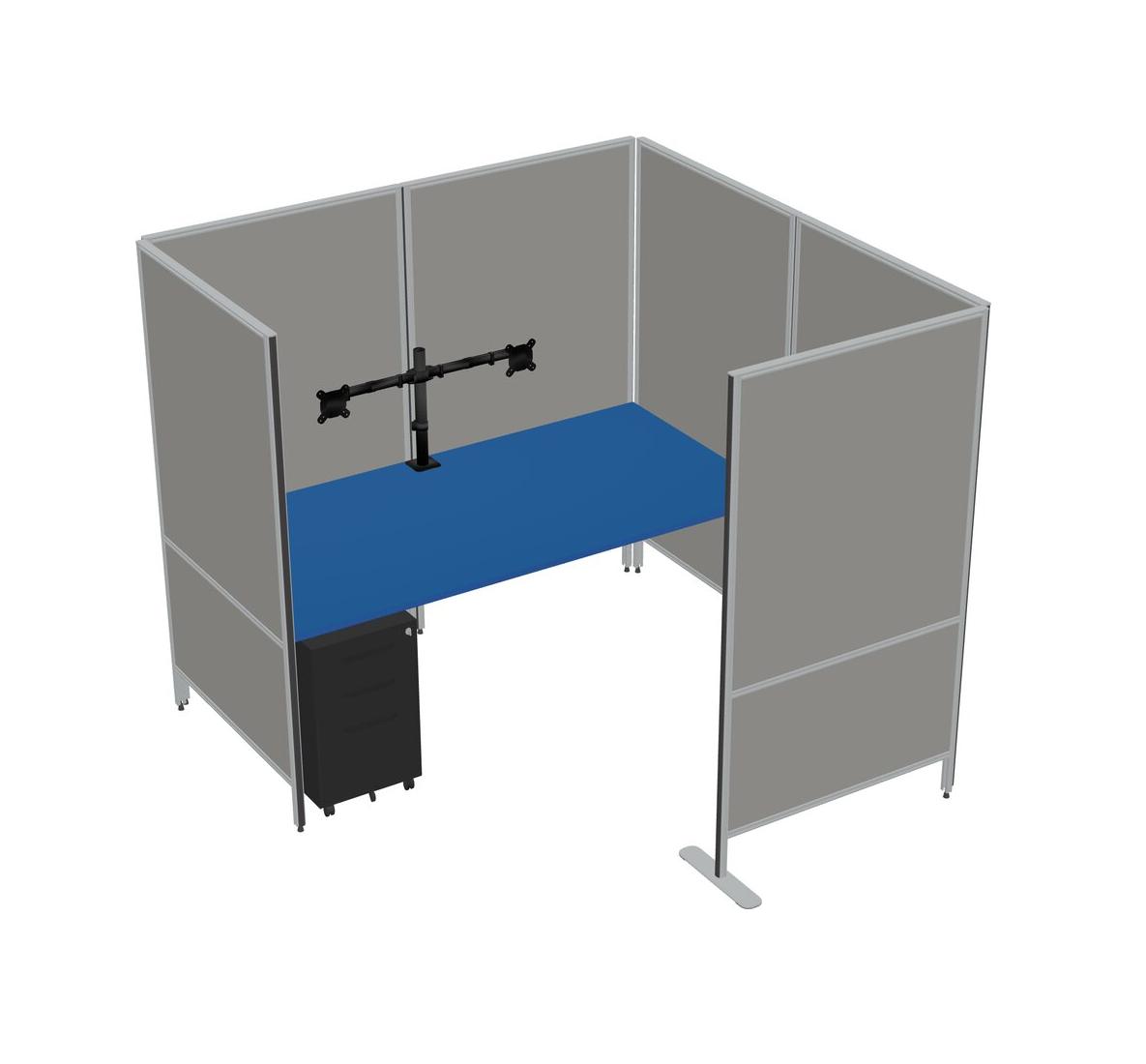 Prism Blue Flexible Panel System With Privacy For 1 + Metal Mobile Drawers + Monitor Arm (double Arms)
