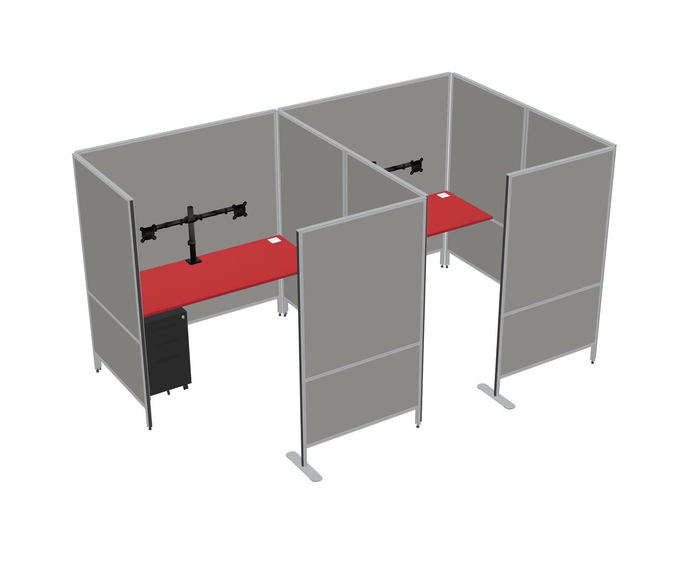 Prism Red Flexible Panel System With Privacy For 2 + Metal Mobile Drawers + Monitor Arm (double Arms)