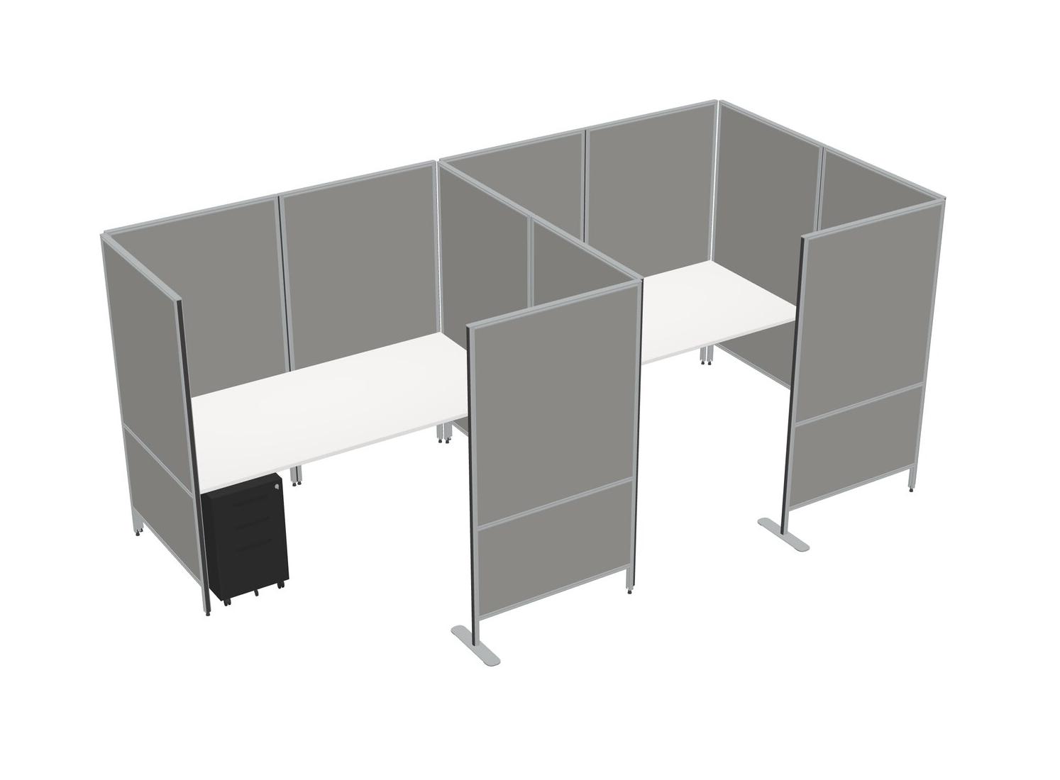 White Flexible Panel System With Privacy For 2 + Metal Mobile Drawers