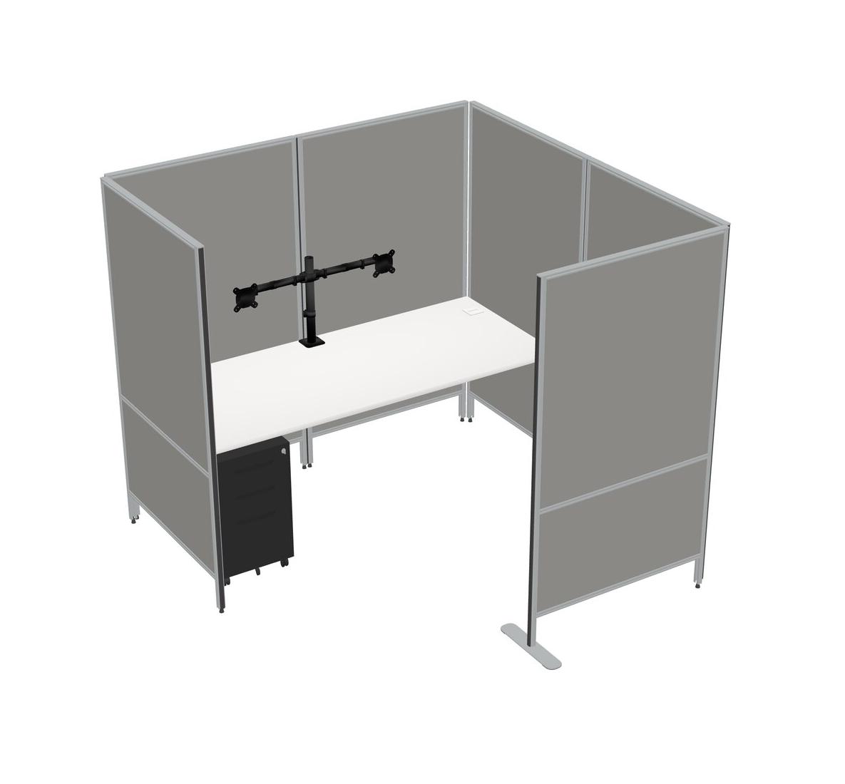 White Flexible Panel System With Privacy For 1 + Metal Mobile Drawers + Monitor Arm (double Arms)