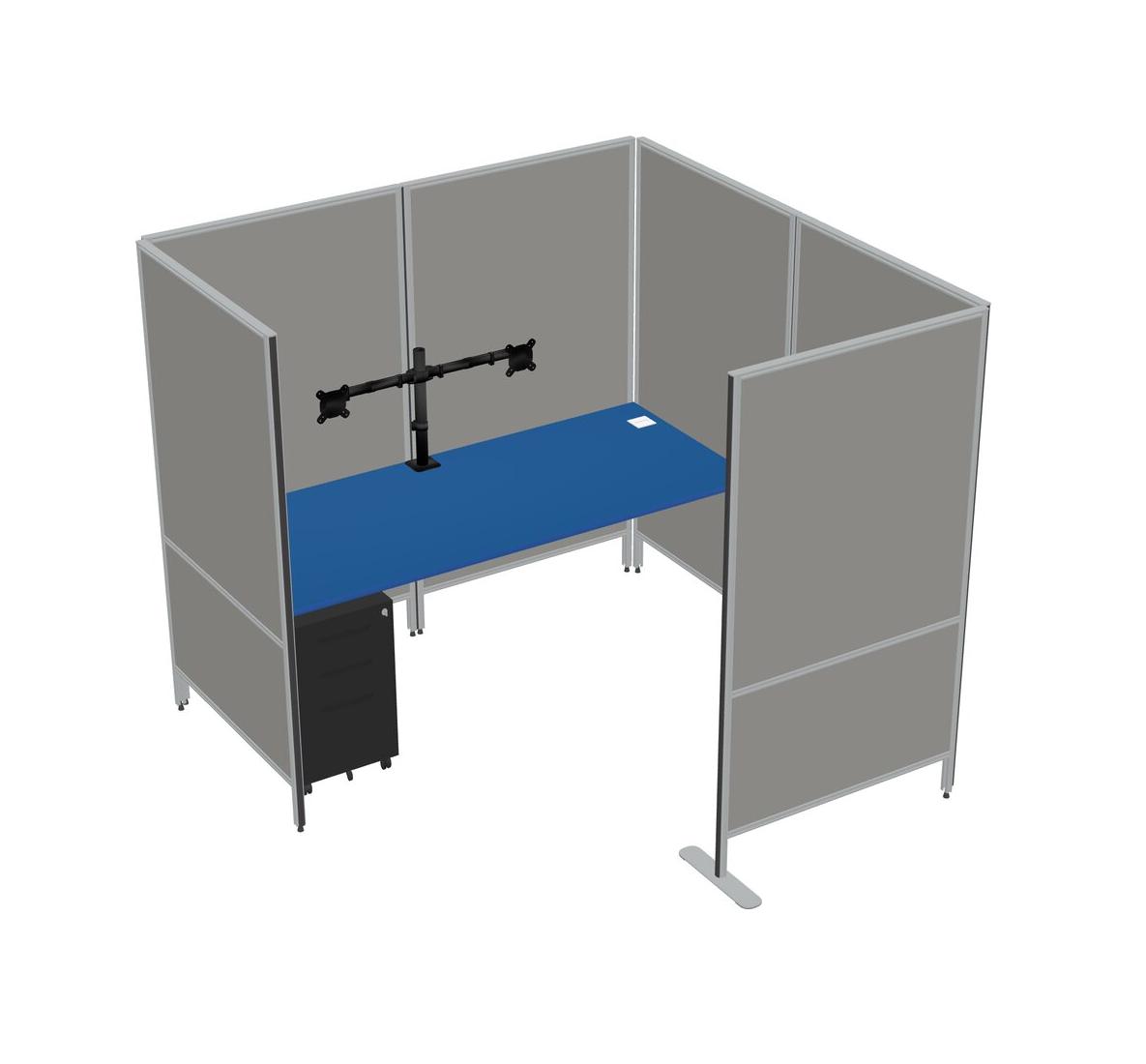Prism Blue Flexible Panel System With Privacy For 1 + Metal Mobile Drawers + Monitor Arm (double Arms)