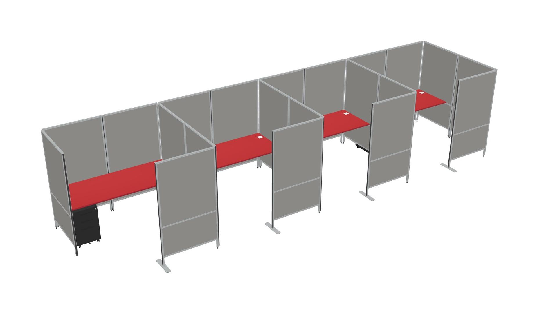 Prism Red Flexible Panel System With Privacy For 4 + Metal Mobile Drawers