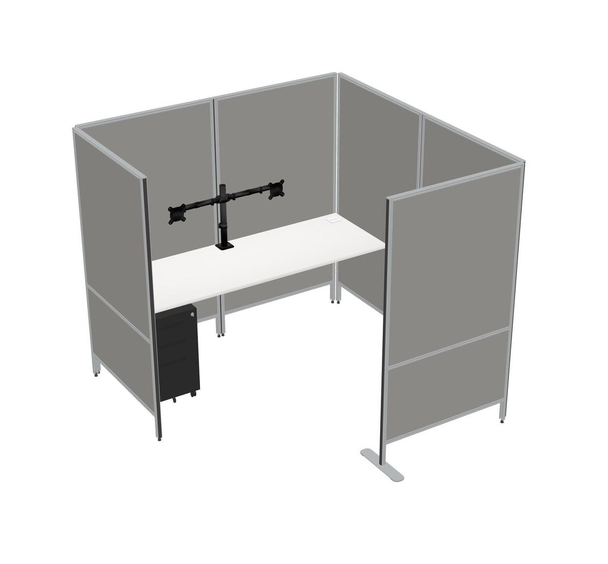 White Flexible Panel System With Privacy For 1 + Metal Mobile Drawers + Monitor Arm (double Arms)