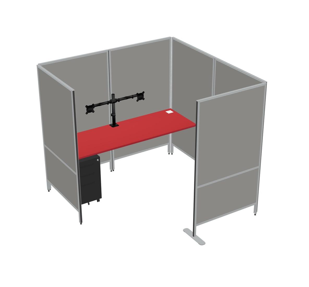 Prism Red Flexible Panel System With Privacy For 1 + Metal Mobile Drawers + Monitor Arm (double Arms)