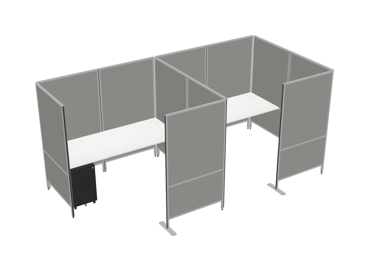 White Flexible Panel System With Privacy For 2 + Metal Mobile Drawers