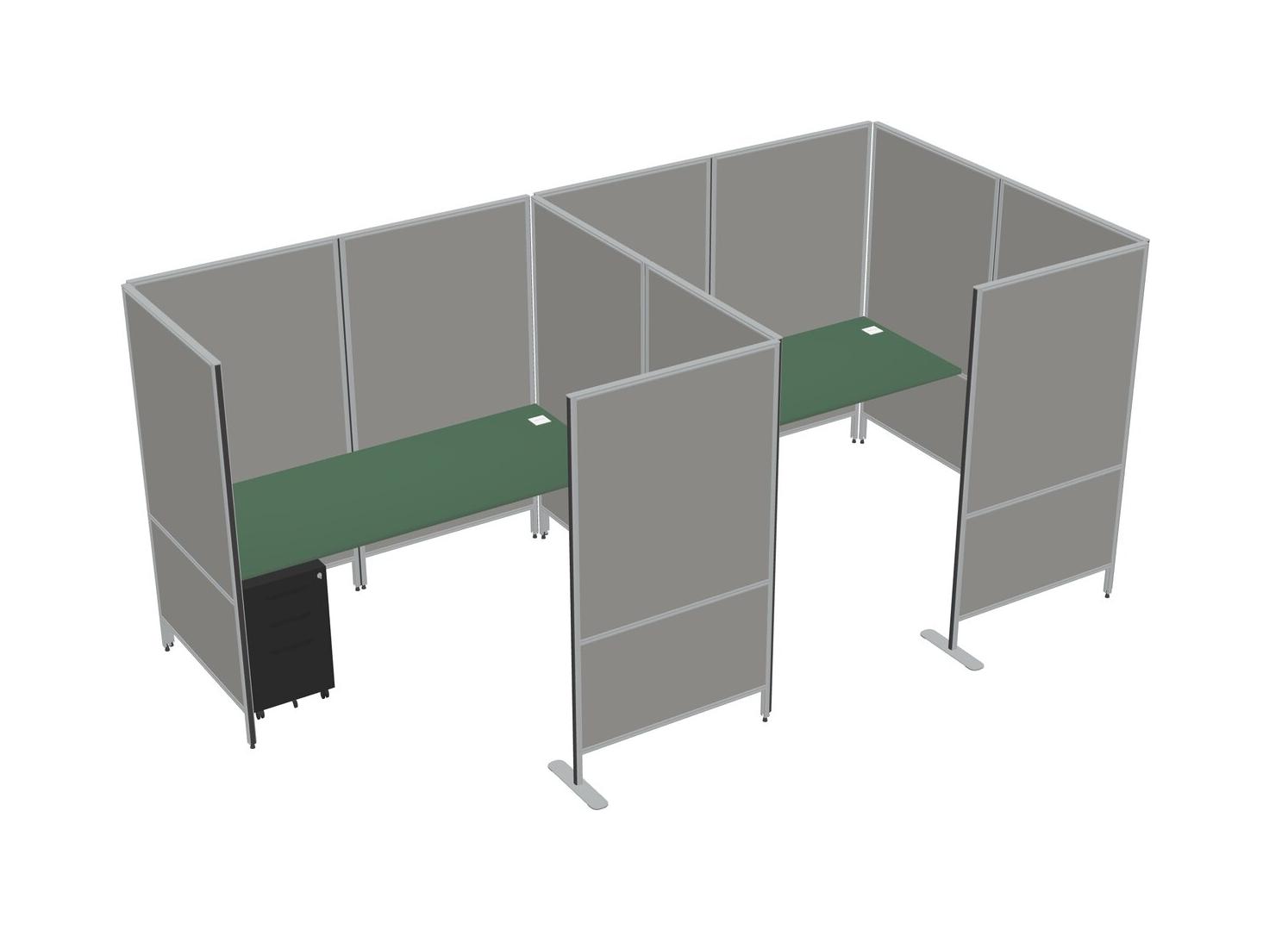 Green Flexible Panel System With Privacy For 2 + Metal Mobile Drawers