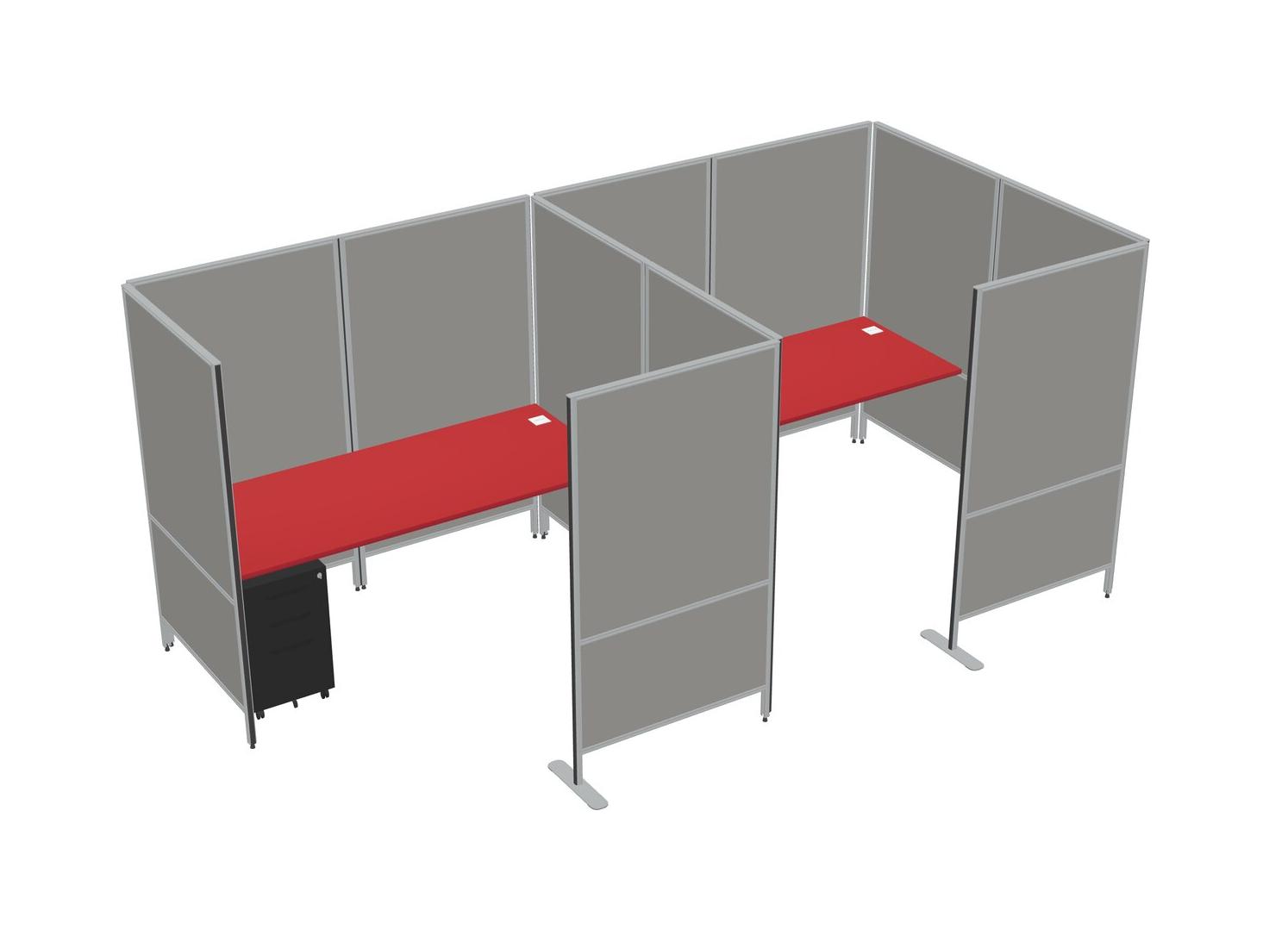 Prism Red Flexible Panel System With Privacy For 2 + Metal Mobile Drawers