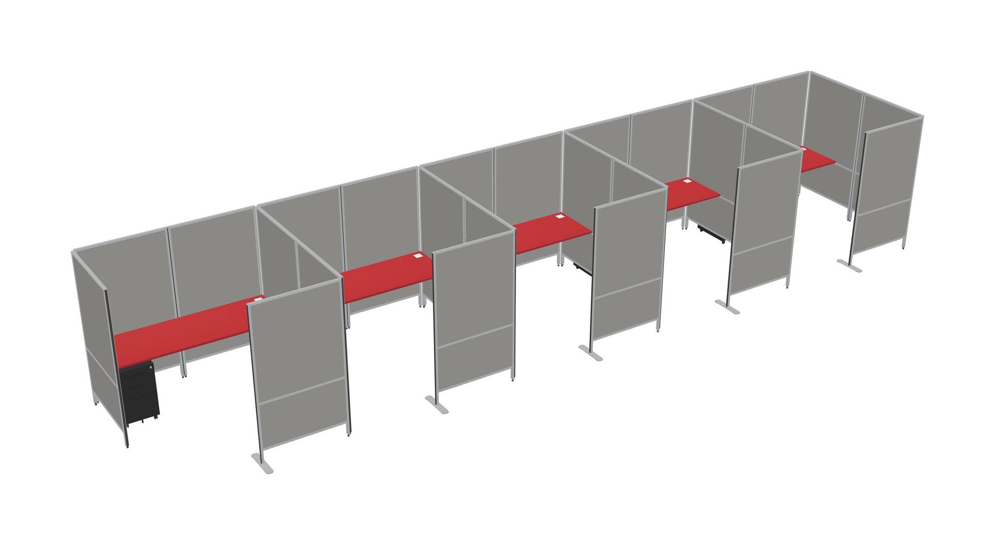 Prism Red Flexible Panel System With Privacy For 5 + Metal Mobile Drawers