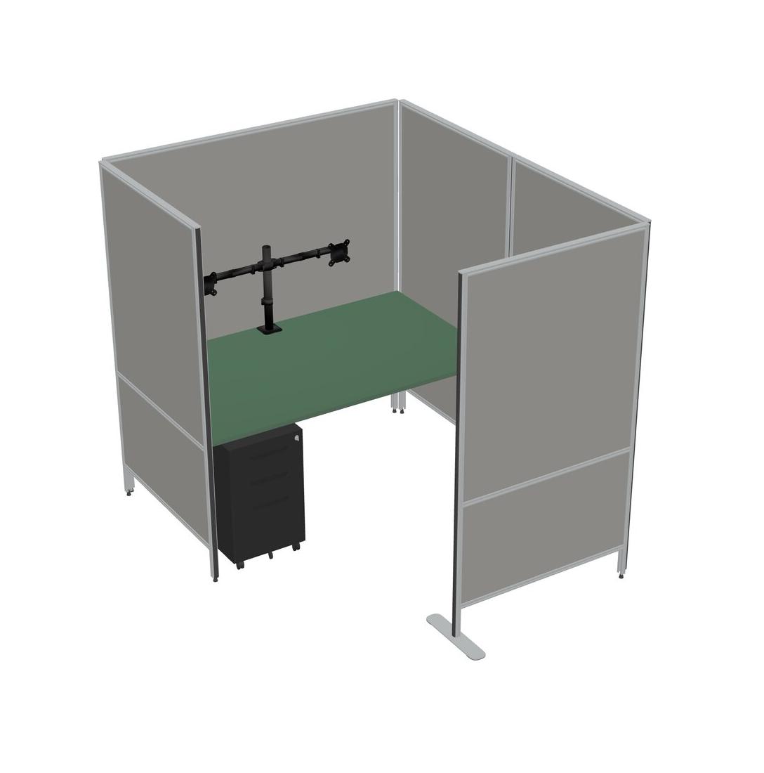 Green Flexible Panel System With Privacy For 1 + Metal Mobile Drawers + Monitor Arm (double Arms)