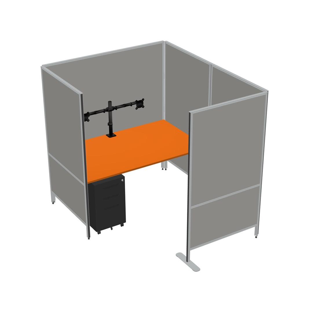 Orange Flexible Panel System With Privacy For 1 + Metal Mobile Drawers + Monitor Arm (double Arms)