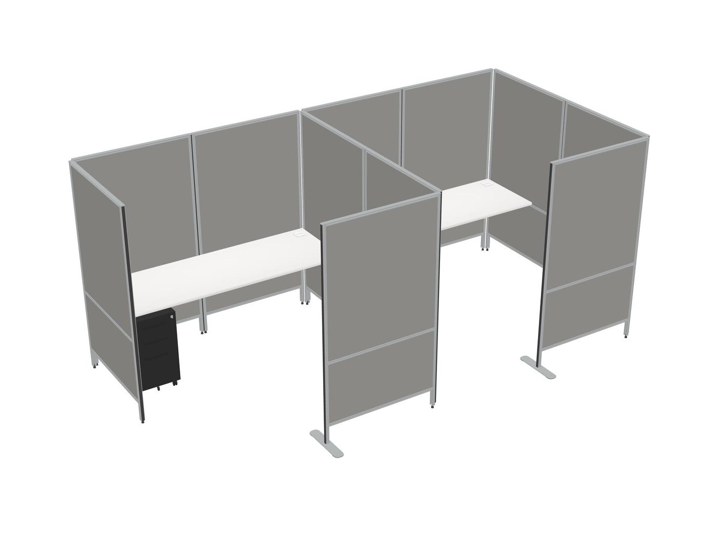 White Flexible Panel System With Privacy For 2 + Metal Mobile Drawers