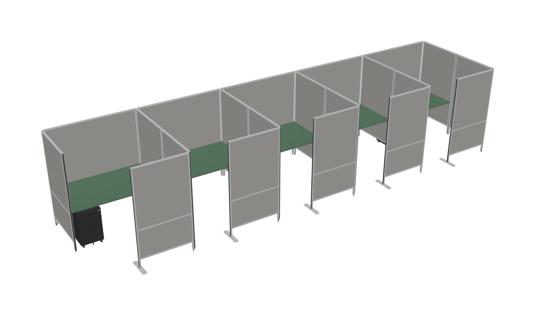 Green Flexible Panel System With Privacy For 5 + Metal Mobile Drawers