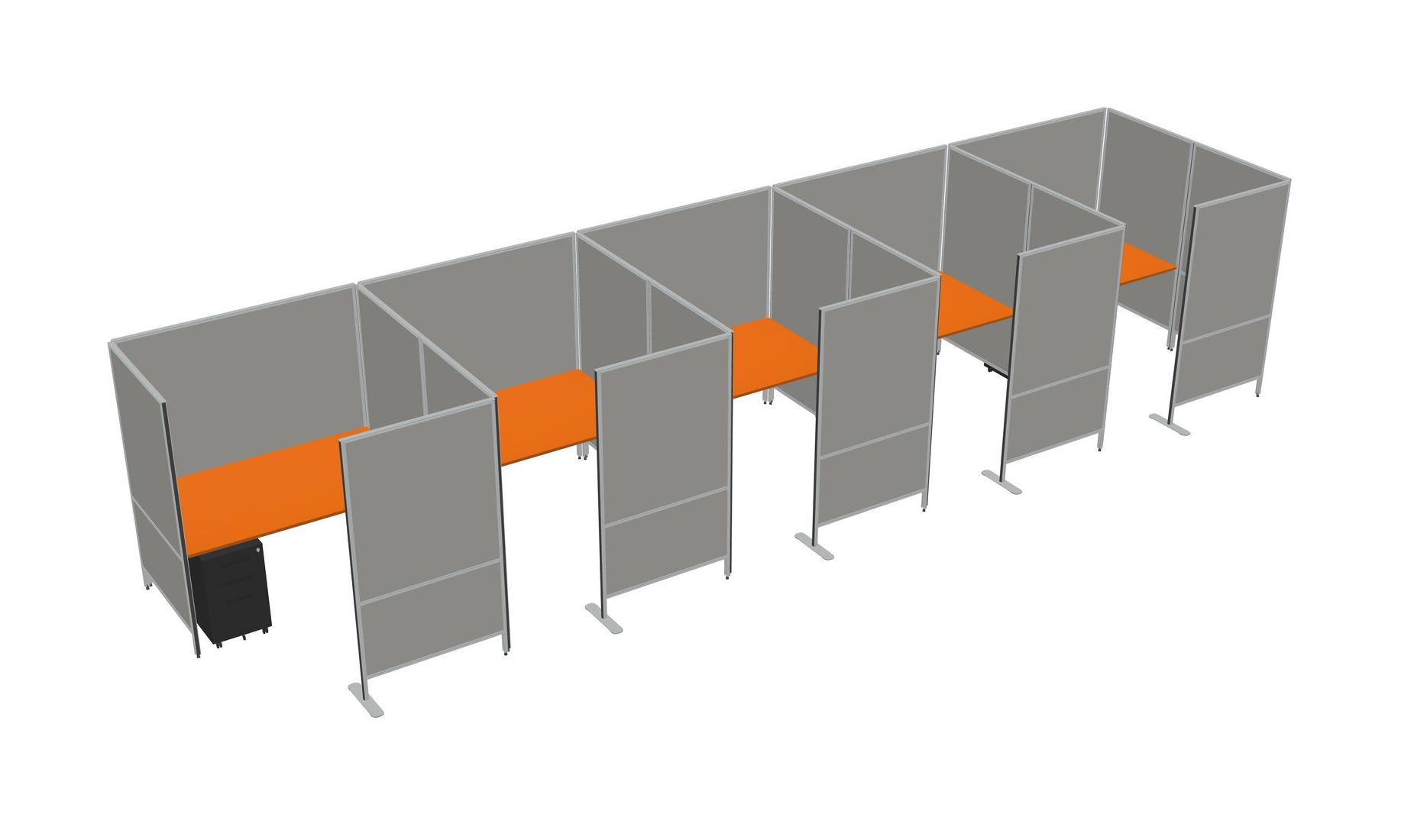 Orange Flexible Panel System With Privacy For 5 + Metal Mobile Drawers