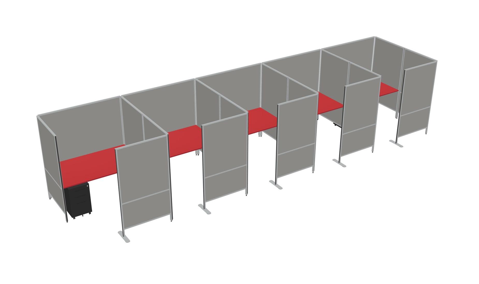 Prism Red Flexible Panel System With Privacy For 5 + Metal Mobile Drawers