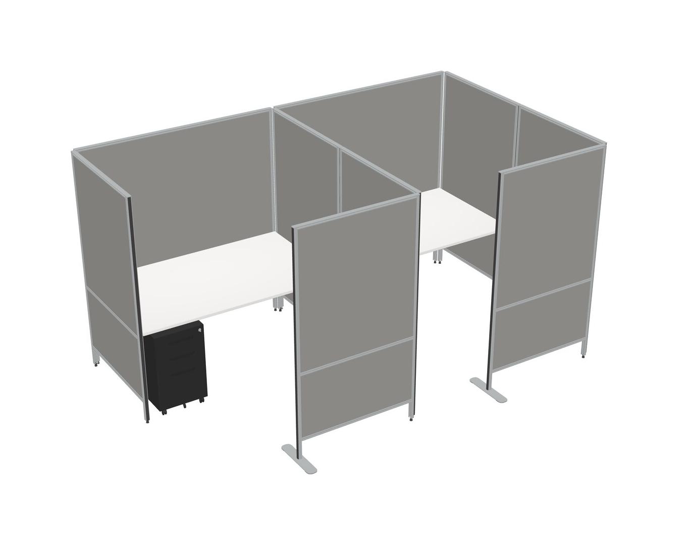 White Flexible Panel System With Privacy For 2 + Metal Mobile Drawers