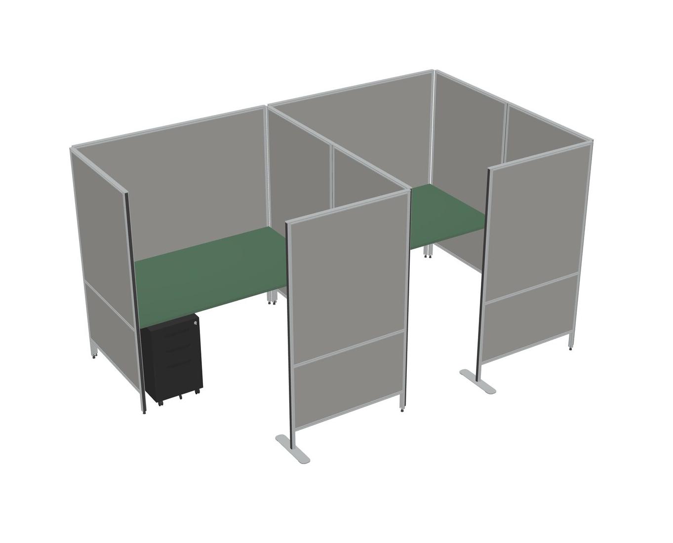 Green Flexible Panel System With Privacy For 2 + Metal Mobile Drawers