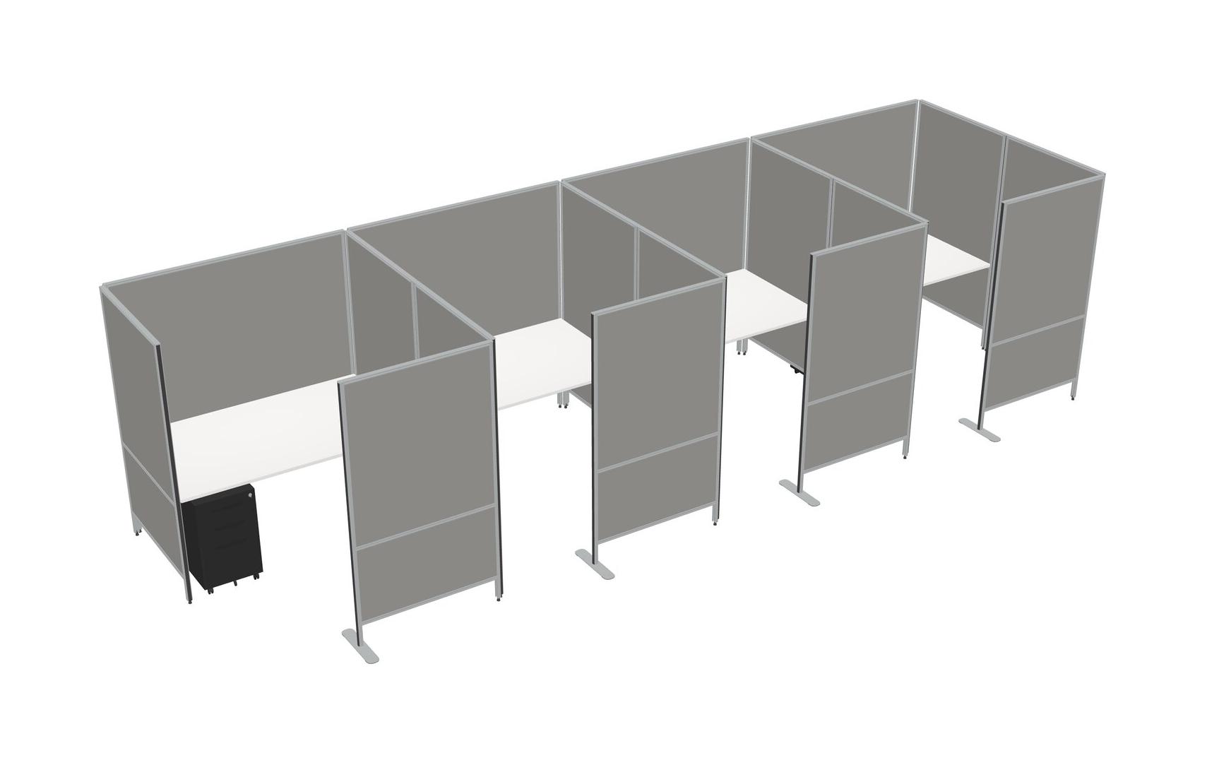 White Flexible Panel System With Privacy For 4 + Metal Mobile Drawers