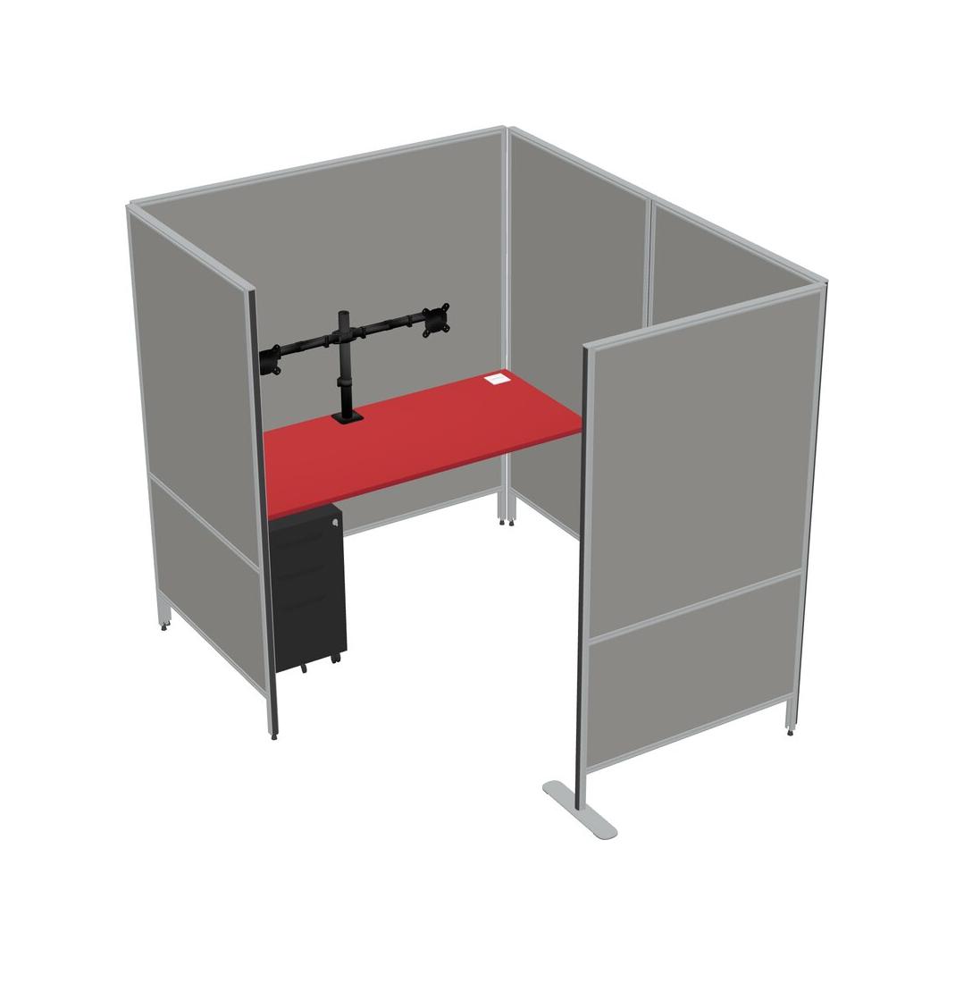 Prism Red Flexible Panel System With Privacy For 1 + Metal Mobile Drawers + Monitor Arm (double Arms)