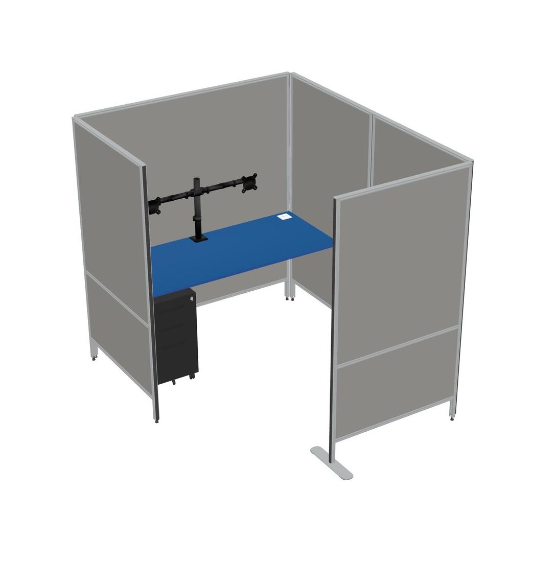 Prism Blue Flexible Panel System With Privacy For 1 + Metal Mobile Drawers + Monitor Arm (double Arms)