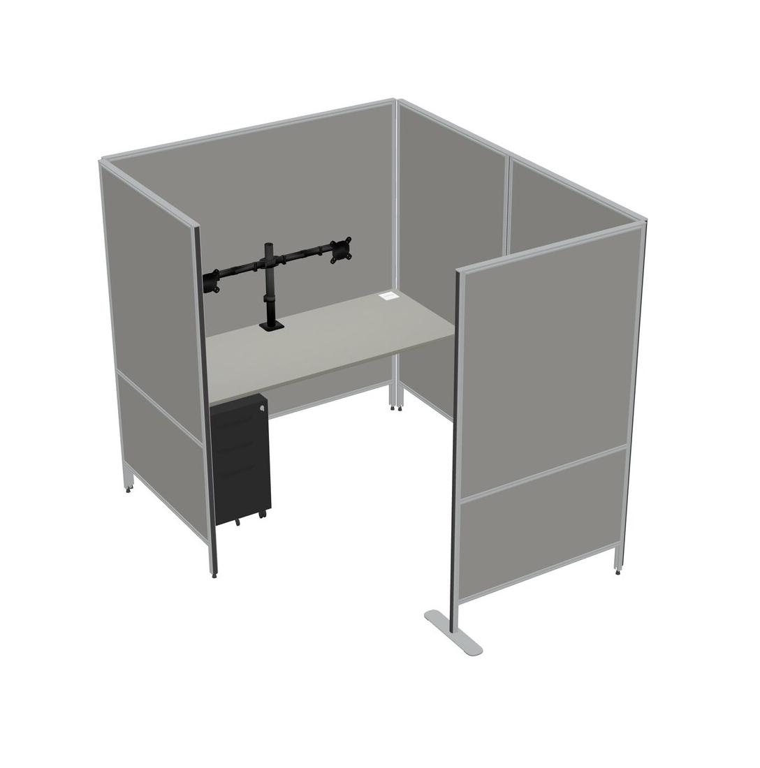 Grey Shadows Flexible Panel System With Privacy For 1 + Metal Mobile Drawers + Monitor Arm (double Arms)