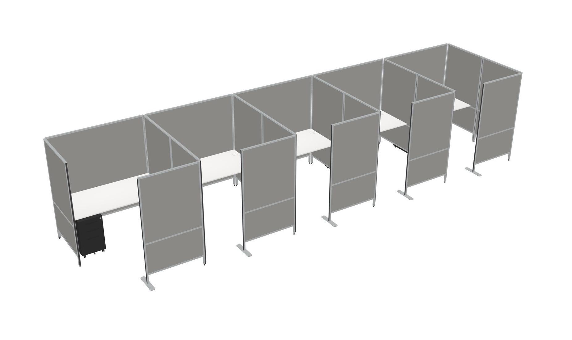White Flexible Panel System With Privacy For 5 + Metal Mobile Drawers
